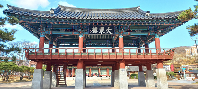´ë·Îº¯¿¡ ¹®·çÀÎ ´ëµ¿·çÀÇ ÀÚŰ¡ ÀÇ¿¬ÇÏ´Ù. ۰¡ Å« Á÷»ç°¢ÇüÀÇ ½Ã¸àÆ® ÁÖÃåµ¹ À§ÀÇ ºÓÀº ±âµÕµéÀÌ ¿ì¶Ò ¼Ú¾Æ ÀÖ´Ù. ´ëµ¿·ç(ÓÞÔÔ×§)´Â °í·Á ¿Õ°ÇÀÌ ÈĻﱹ ÅëÀÏÀ» ÇÒ ¶§ ÀÌ Áö¿ªÀÇ µµ¿òÀ» ¹ÞÀº °í¸¶¿ò¿¡ ÇÏ»çÇÑ À̸§ÀÌ´Ù. Áï ¾È¾î´ëµ¿(äÌåÚÓÞÔÔ)¿¡¼ µû¿Â ¸»·Î ÇöÀçÀÇ ¾Èµ¿ Áö¸íÀÌ ¿©±â¿¡¼ À¯·¡ µÇ¾ú´Ù°í ÇÒ ¼ö ÀÖ´Ù. Àü¸Áµµ ÁÁÀº ´ëµ¿·ç´Â Á¤¸é 3Ä, Ãø¸é 2ÄÀÇ ´©°¢ °Ç¹°·Î ¸Ú½º·¯¿î ÆÈÀÛÁöºØÀ» °¡Á³´Ù.