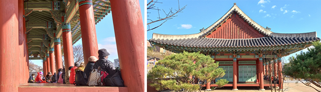 Á¤¸é 7Ä, Ãø¸é 4ÄÀÇ ÆÈÀÛÁöºØÀÎ ¿µ°¡ÇåÀÌ ÇѰ¡·Ó´Ù. ÇÞ»ìÀÌ °í¿î ³¯, ÇѶ§ÀÇ ³ëÀεéÀÌ ¸¶·ç¿¡ ÇÑ ÁÙ·Î ´Ã¾î¾É¾Æ ¹Ì´ãÀ» ³ª´©°í, µÚÆí ¸¶·ç¿¡´Â ÁÖ·Î ÀþÀº ¿¬ÀεéÀÌ ³¡¾ø´Â ¹Ì´ãÀ» ³ª´©¸ç Æí¾ÈÇÑ ¿©À¯ÀÇ ½Ã°£À» º¸³½´Ù. ¿ª»çÀûÀÎ °Ç¹°ÀÌÀÚ ¿ª»çÀûÀÎ °ø°£(¿ª»ç°ø¿ø)¿¡¼ ½Ã¹ÎµéÀº ½Ãµµ ¶§µµ ¾øÀÌ Âʸ¶·ç¿¡ ¾É°Å³ª ´©¿ö ÈÞ½ÄÀ» ÃëÇÑ´Ù. ¿µ°¡Çå »ç¹æ µÑ·¹ÀÇ Âʸ¶·ç¿¡´Â Ç×»ó »ç¶÷µéÀÌ ¸Ó¹°·¯ ÀÖ´Â °ÍÀ» º¼ ¶§°¡ ¸¹´Ù. ¸¶·ç¿¡ ½Ã¹ÎÀ» Ç×»ó °ÉÄ¡°í ÀÖ´Â ¿µ°¡Çå¿¡ ºñÇϸé ÁÖ·Î ÃâÀÔÀ» ±ÝÇϰí ÀÖ´Â ÈÕÇÑ ´ëµ¿·ç´Â ¼·Î ´ëÁ¶ÀûÀÌ´Ù.