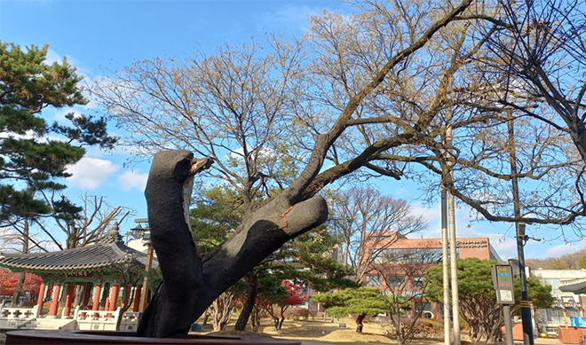 ¿õºÎ°ø¿ø µÑ·¹¿¡´Â ½Å¸ñÀÎ ºÎ½Å¸ñÀ» ºñ·ÔÇÏ¿© Ç⳪¹«, ¼Ò³ª¹«, ´Üdz³ª¹« µî ¿©·¯ ³ª¹«°¡ ÀÚ¸®Çϰí ÀÖ´Ù. ±× °¡¿îµ¥ ¿¬½ÄÀ» Çì¾Æ¸®±â ¾î·Á¿î ÇÑ ±×·çÀÇ °í¸ñÀΠȸȳª¹«µµ ÀÚ¸®ÇÑ´Ù. ±ä ¼¼¿ù¿¡ ¸öÀ» ÁöÅÊÇϱ⠾î·Á¿ü´ÂÁö µÎ °¥·¡ÀÇ Å« ¸öÅë °¡¿îµ¥ ÇÑ °¥·¡´Â ÀÌ¹Ì ±«»çÇß°í, ÇÑ °¥·¡ ¸öÅ븸ÀÌ °Ü¿ì ¸î °³ÀÇ ÆÈ°ú °¡´À´Ù¶õ °¡ÁöµéÀ» ±æ·¯³»¸ç ¼¼¿ùÀ» Áö»õ¿ì°í ÀÖ´Ù. ÀÌ¹Ì ±«»ç°¡ ÀÌ·ç¾îÁø °í¸ñ ¸öÅë ÀϺο¡´Â ±× ÈÕÇÔÀ» ¸Þ¿ì±â À§ÇØ ½Ã¸àÆ®°¡ ä¿öÁ® ÀÖ´Ù.