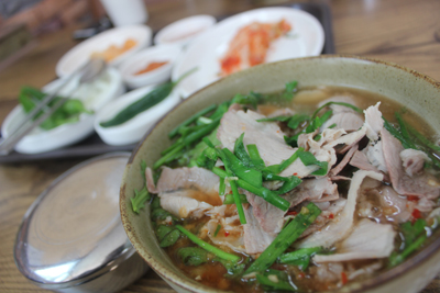 ¾ÆÁ÷ »ç¶÷µéÀÌ Àß ¸ð¸£´Â ¼û°ÜÁø ¸Þ´º´Â ¹Ù·Î ¼öÀ° Á¤½ÄÀÌ´Ù. ±¹¹ä ¼Ò(á³)°¡°Ý¿¡ 1,500 ¿ø¸¸ ´õ º¸Å¸é ÁÖ¹®ÇÒ ¼ö Àִµ¥ ¹ä°ú ¹Ì´Ï±¹¹ä, ±×¸®°í ¼öÀ°ÀÌ ³ª¿Â´Ù. °³ÀÎÀûÀ¸·Î ° ·Â ÃßõÇÏ´Â ¸Þ´ºÁö¸¸ ¾Æ½±°Ôµµ ½Ä»ç½Ã°£´ë(Á¡½É½Ã°£ ȤÀº Àú³á½Ã°£)¿¡´Â ÁÖ¹®ÇÒ ¼ö°¡ ¾ø´Ù. ÇÑÀûÇÑ ½Ã°£¿¡ ¹æ¹®ÇÒ ¿¹Á¤À̶ó¸é ²À ¼öÀ° Á¤½ÄÀ» ½ÃÄѺ¸ÀÚ(¾ó¸¶ Àü ¿ÀÀü 11½Ã 30ºÐ°æ¿¡ ÁÖ¹®¿¡ ¼º°øÇß´Ù). Àý´ë ÈÄȸÇÏÁö ¾ÊÀ» °ÍÀÌ´Ù. ½Ã¹Îµé»Ó¸¸ ¾Æ´Ï¶ó ¾Èµ¿À» ¿©ÇàÇÏ´Â °ü±¤°´µéµµ ãÀ¸¸é ÁÁÀº ½Ä»ç Àå¼Ò´Ù. Àú·ÅÇÑ °¡°Ý ¿¡ µçµçÇÏ´Ù ¸øÇØ ³ÑÄ¡´Â ÇÑ ³¢¸¦ Áñ±æ ¼ö ÀÖ´Ù.