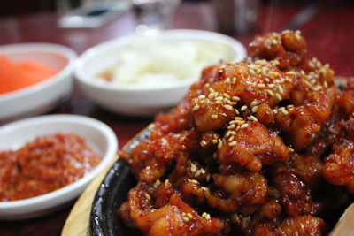 ¹«»À´ß¹ß 2ÀκÐ. ´ß¹ßÀº ¿ÈÆøÇÏ°Ô ´ã°Ü ³ª¿Â´Ù. »çÁø»óÀ¸·Î º¸¸é ¾çÀÌ ¸¹Áö ¾Ê¾Æ º¸ÀÌÁö¸¸, ¸·»ó ¸ÔÀ¸¸é ±×·¡µµ ¾çÀÌ ²Ï µÈ´Ù. ¸ÅÄÞÇÑ ¸ÀÀÌ¶ó¼ ´Üµ¶À¸·Î ¸Ô±â´Â Èûµé°í, ¹äÀ̳ª ¶ËÁý±¸ÀÌ, ¼ú¾ÈÁÖ µî ´Ù¸¥ À½½Ä°ú °°ÀÌ ¸Ô´Â°Ô ÀϹÝÀûÀÌ´Ù.