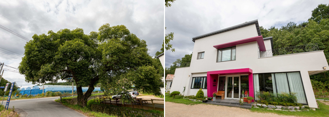 ±æÀ» µû¶ó°¡´Ù º¸¸é Å« ³ª¹«¿Í Ä«Æä ¿ÜºÎÀÇ ºÐÈ«»ö Æ÷ÀÎÆ® º®Ã¼°¡ ÇÑ´«¿¡ ¶è´Ù.