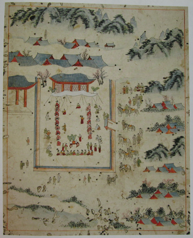 ±×¸²À» »ìÆìº¸¸é °ü¾ÆÀÇ º°Ã¤ ¾Õ¿¡ Ä£ õ¸· ¾Æ·¡ ¾Èµ¿ºÎ»ç È«»ç±ºÀÇ ¸ðÄ£À» Áß½ÉÀ¸·Î Âü¼®ÀÚµéÀÌ ¿ÞÆí¿¡´Â »ç¸ð°ü´ë Áï º½½¾ÆÄ¡µéÀÌ ¾²´ø ¸ðÀÚ¿Í °üº¹À» ÀÔÀº »ç¶÷µé 9¸íÀ¸·Î ´ç½Ã º½½¿¡ ºñÃ纸¸é ¾Èµ¿ºÎ»ç È«ÀÌ»ó, °æÁÖºÎÀ± À̽þð, ½Å·ÉÇö°¨ 䱿¼±, ºñ¾ÈÇö°¨ À¯À§, ¿µÁÖ±º¼ö À̶÷, Àü ´ë±¸ºÎ»ç ±è±¸Á¤, ÇԾ籺¼ö °í»ó¾È, ¼ºÁÖ¸ñ»ç ½Å°æÁø, Á¾»ç¶û ±Ýº¹°í·Î »ý°¢ÇÒ ¼ö ÀÖ´Ù. ±×¸®°í ¿À¸¥ÂÊÀ¸·Î´Â ¼±ºñµéÀÌ Æò»ó½Ã¿¡ ÀÔ´ø °Ñ¿ÊÀÎ µµÆ÷¿Í Èæ¸³(°ËÀº °«)À» ¾´ »ç¶÷µéÀÌ ³ª¶õÈ÷ ¾É¾Æ ÀÖ´Ù. 8¸íÀÌ ¾É¾Æ ÀÖÀ¸³ª Âü¼®ÀÚ ¸í´ÜÀ» »ìÆìº¸¸é »ý¿ø À±ÀÇÁ¤, Áø»ç ÀÌÁ¾°, »ý¿ø À¯ÀοÁ, »ý¿ø ±è½Âº¹, Áø»ç ±Ç´, »ý¿ø ÀÌÈñ¹é µî 6¸íÀÌ°í ³ª¸ÓÁö 2¸íÀº ´©±¸ÀÎÁö È®ÀÎÇÏ±â ¾î·Æ´Ù. ÁÖÀ§¿¡´Â µû¶ó¿Â ½ÃÁ¾, °ç¿¡¼ ½ÃÁßµå´Â °ü±â¿Í ÀÌ ¸ð½ÀÀ» ±¸°æÇÏ·¯ °¢Áö¿¡¼ ã¾Æ¿Â »ç¶÷µé, ÁÖº¯ÀÇ °Ç¹°°ú »êõÀ» ¹¦»çÇÏ¿´´Ù.