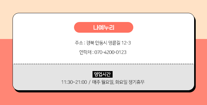 ³ª¿¹´©¸®´Â º»Ã¤¿Í º°Ã¤ µî ÃÑ ¼¼ °÷ÀÇ ´Ù¾çÇÑ °ø°£À¸·Î ÀÌ·ç¾îÁ® ÀÖ¾î ÃëÇâ¿¡ µû¶ó ÀÚ¸®¸¦ ¼±ÅÃÇÒ ¼ö ÀÖ´Â Áñ°Å¿òÀÌ ÀÖ´Ù. Á¶¿ëÈ÷ È¥ÀÚ¸¸ÀÇ ½Ã°£À» º¸³»°í ½ÍÀ» ¶§, ȤÀº ¼ÒÁßÇÑ »ç¶÷µé°ú Áñ°Å¿î ´ëȸ¦ ³ª´©°í ½ÍÀ» ¶§ ¸ðµÎ ÀûÇÕÇÏ´Ù. ¾Èµ¿ ½Ãû ±Ùó¿¡¼ °í¿äÇÏ°í ¾Æ¸§´Ù¿î Ä«Æä¸¦ ã´Â´Ù¸é ÇÑ¿ÁÀÇ ¿ì¾ÆÇÑ Á¤Ãë¿Í Çö´ëÀûÀÎ °¨°¢À» ¼±»çÇÏ´Â ³ª¿¹´©¸®¸¦ ¹æ¹®ÇØ º¸ÀÚ.