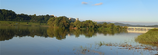 ¿ù¿µ±³¿Í ¹ýÈï±³, ¸¶¶ã º¸Çà±³, ³«Ãµ±³¸¦ Áö³ª´Â °¹°Àº ¿µ¾ç ÀÏ¿ù»ê¿¡¼ ½ÃÀÛÇÑ µ¿°(¹Ýº¯Ãµ)À» µû¶ó È帣´ø ¹°°ú ÇÕÃÄÁø´Ù. ³«µ¿°°ú µ¿°(¹Ýº¯Ãµ)¿¡¼ ³»·Á¿Â ¹°ÀÌ ³«Ãµ±³¸¦ Áö³ª¸é¼ ¼·Î ¾î¿ì·¯Áø´Ù. ´Ù½Ã ¸»ÇØ µ¿°ÀÎ ¹Ýº¯ÃµÀÌ ¿ëÁ¤±³¸¦ Áö³ª¸é¼ ¾Èµ¿´ï »ó·ù¿¡¼ Èê·¯¿À´Â ³«µ¿°°ú ¸¸³ª µÎ¹°¸Ó¸®¸¦ ÀÌ·é´Ù. µÎ °¹°ÀÌ ÇÕ·ùÇÏ´Â ÁöÁ¡ÀÇ µÐÄ¡¿¡ ‘³«µ¿° ½Ã¹ßÁö’(³«µ¿° º»·ùÀÇ ½Ã¹ßÁö)¶ó´Â Ä¿´Ù¶õ Ç¥Áö¼®ÀÌ À̸¦ Àß ¸»ÇØÁØ´Ù.