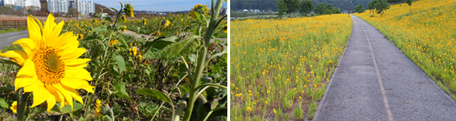 ³«µ¿°À» Áß½ÉÀ¸·Î ÆîÃÄÁø Àü°æÀº ½Ã¹Îµé¿¡°Ô »îÀÇ ÁúÀ» °íÃëÇÑ´Ù. Áï »ý¸í¼ö¸¦ ½Ç¾î ³ª¸£´Â ³ÐÀº ³«µ¿° ¾çÂÊ µÐÄ¡¿¡´Â ½Ã¹ÎÀÇ °Ç°À» À§ÇØ ´Ù¾çÇÑ °ø°£À» ÆîÃijõ¾Ò´Ù. »ç½Ã»çö ½Ã¹ÎÀÇ °Ç°À» À§ÇÑ À£ºù °ø°£ÀÌÀÚ ÈÞ½Ä °ø°£ÀÌ´Ù. ¿©±â¿¡´Â ´Ù¾çÇÑ ±â±¸¿Í ±¸Àå ¹× °¢Á¾ ½Ä¹°·Î ¾î¿ï¸° ¾Æ¸§´Ù¿î ²É¹çÀÌ ³«µ¿° µÐÄ¡¸¦ °¡µæ ä¿ì°í ÀÖ´Ù.