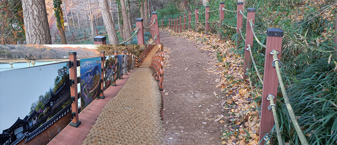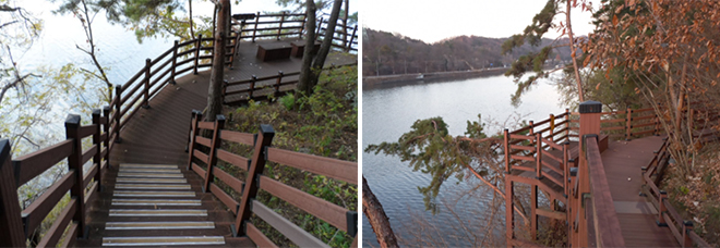 ¾Èµ¿È£¸¦ ¹è°æÀ¸·Î È£Á£ÇÑ ¼öº¯ ±æÀº »ç»öÀÇ ±æÀÌ´Ù. ³ô³·À̸¦ ´Þ¸®ÇÏ¸ç ±æ°Ô »¸¾îÀÖ´Â µ¥Å©±æÀÌ ÀÏ··ÀÌ´Â ¹°°á°°ÀÌ ÆîÃÄÁ® ÀÖ´Ù. ±×°ÍÀº ¸¶Ä¡ ±¼°îÁø »îÀÇ ¿©Á¤Ã³·³ ´Ù°¡¿À±âµµ ÇÑ´Ù. ÆòźÇÑ ±æÀÌ Àִ°¡ ÇÏ¸é ¾à°£ ¼ûÀÌ Â÷°Ô ´Ù°¡¿À´Â ¿À¸£¸· °è´Ü ±æÀÌ ÀÖ´Ù. Á» Èûµé°Ô µ¥Å© °è´ÜÀ» ¿Ã¶ú´Ù ½ÍÀ¸¸é ¾î´À»õ ³»¸®¸·±æ °è´ÜÀÌ À̳» °¡»Û ¼ûÀ» °í¸£°Ô ÇÑ´Ù. ¿©±â¼ µé·Á¿À´Â »õ¼Ò¸®¿Í ¹°¼Ò¸®, ¹Ù¶÷ ¼Ò¸®´Â ÀÚ¿¬ÀÌ Áִ û·®ÇÑ À½¿ªÀÇ ¸Þ¾Æ¸®´Ù.