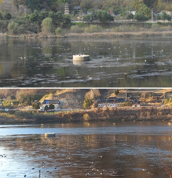 °ÀÌ ¸¶¸£Áö ¾ÊÀ» Á¤µµ·Î ¹æ·ùµÈ ³·Àº ¼öÀ§ÀÇ ° À§·Î ö»õ°¡ ³¯¾Æµé¾ú´Ù. ½ÃÀýÀÌ Â÷°¡¿öÁ³±â¿¡ ¾î±è¾øÀÌ Ã¶»õµéÀÌ ³«µ¿°À¸·Î ã¾Æµé¾ú´Ù. ÇÑöÀ» º¸³»±â À§ÇØ ºÏÂÊ¿¡¼ À̰÷ ¾Èµ¿È£¿¡ ã¾Æµç ö»õµéÀº ³¡¾ø´Â ¹æ¶ûÀÚ´Ù. ºÐÁÖÇÒ °Í ¾øÀÌ ÇÑÀÚ¸®¿¡ ¸Ó¹°¸ç ¹°¼ÓÀ» ÀÀ½ÃÇÏ´Â »õµéÀÇ Á¦°¢°¢ ¸ð½ÀÀÌ ÀÚÀ¯·Ó°í Æò¿ÂÇÏ´Ù. ¹° À§ÀÇ Ã¶»õµéÀÌ ¸¶Ä¡ »ì¾Æ ¿òÁ÷ÀÌ´Â ²Éó·³ º¸ÀδÙ.
