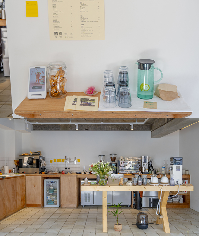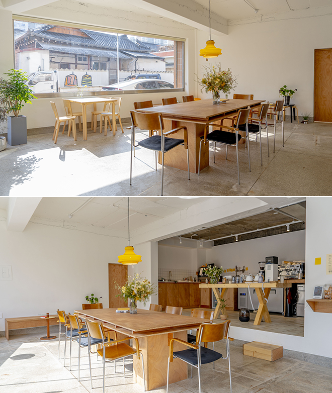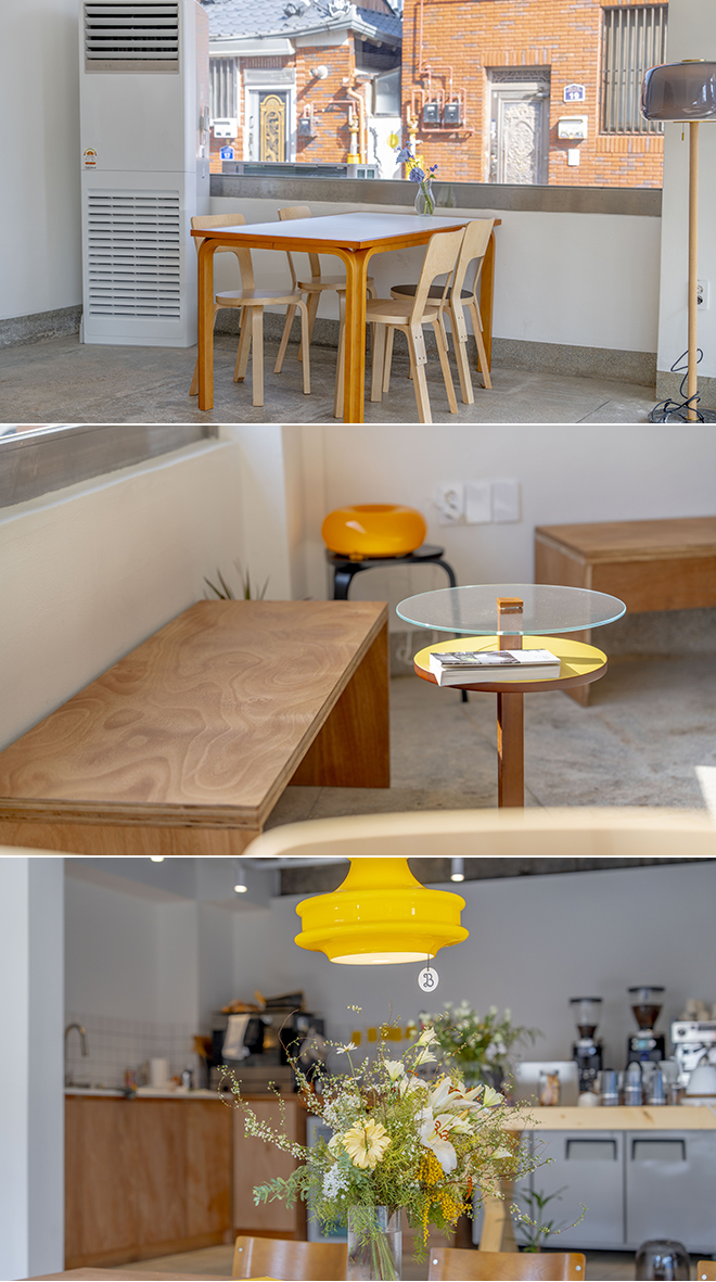 ³»ºÎ·Î µé¾î°¡¸é ÀüüÀûÀ¸·Î ÈÀÌÆ® ÅæÀÇ º®¸é°ú µû¶æÇÑ ¿ìµå °¡±¸°¡ ¹èÄ¡µÇ¾î ÀÖ´Ù. ƯÈ÷ ´«±æÀ» ²ô´Â °ÍÀº Ä¿´Ù¶õ ÅëâÀ¸·Î µé¾î¿À´Â ÇÞ»ìÀÌ´Ù. °ñ¸ñ±æÀÇ ¼Ò¹ÚÇÑ Ç³°æÀÌ ³»ºÎÀÇ ¹Ì´Ï¸ÖÇÑ ÀÎÅ׸®¾î¿Í ¾î¿ì·¯Á® ¸¶Ä¡ ÇÑ ÆøÀÇ ¾×ÀÚ¸¦ °É¾îµÐ µíÇÑ ´À³¦À» ÁØ´Ù. ÀÌó·³ ÇÞ»ìÀÌ Àß µå´Â ¿ÀÈÄ ½Ã°£¿¡ ¹æ¹®ÇÏ¸é °ø°£ Àüü°¡ ´Ù½ºÇÑ Ã¤±¤À¸·Î °¡µæ Â÷ »çÁø Âï±â¿¡µµ ´õÇÒ ³ªÀ§ ¾øÀÌ ÁÁ´Ù.