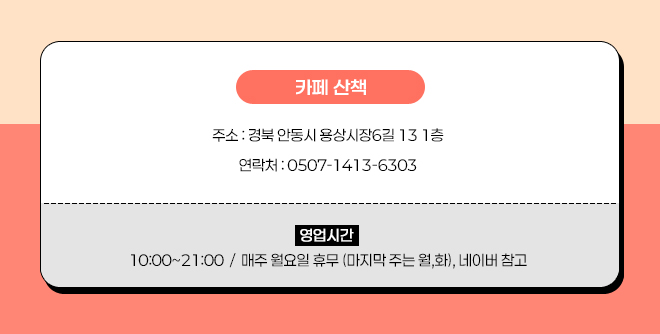 Ä«Æä »êÃ¥Àº ¿ë»ó½ÃÀå Àα٠ÇÑÀûÇÑ °ñ¸ñ±æÀ» µû¶ó °È´Ù º¸¸é ³ª¿À´Â ÀÛÀº ±Ô¸ðÀÇ ¸ÅÀåÀÌ´Ù. À̸§Ã³·³ Ưº°Çϰųª È·ÁÇÏÁö ¾Ê°í, ¼Ò¼ÒÇÑ »êÃ¥À» ´àÀº °ø°£À̶ó´Â ùÀλóÀ» ÁØ´Ù. °ñ¸ñ dz°æ°ú Á¶¿ëÈ÷ ¼¯ÀÌ´Â ¿Ü°üÀº ¹Ù»Û ÇÏ·ç Áß Àá½Ã È£ÈíÀ» °¡´Ùµë°í ½¬¾î°¡°í ½ÍÀº ºÐµé¿¡°Ô ÁÁÀº Àå¼Ò´Ù.
