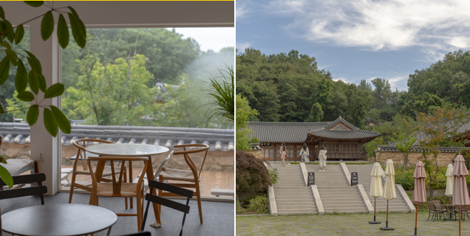 »ê ÁßÅο¡ À§Ä¡ÇÏ´Â ÀüÅëÇÑ¿Á ƯÀ¯ÀÇ ´À³¦À» Àß »ì·Á ÅëÀ¯¸® â¹®À¸·Î º¸ÀÌ´Â ÀÚ¿¬°úÀÇ Á¶È°¡ ¾Æ¸§´ä´Ù. ÇÞ»ì ÁÁÀº ³¯ ¾ß¿Ü Å×ÀÌºí¿¡ ¾É¾Æ ½Ã¿øÇÑ ¹Ù¶÷À» ¸ÂÀ¸¸ç ½¬¾î°¡±â ÁÁÀº °÷ÀÌ´Ù.