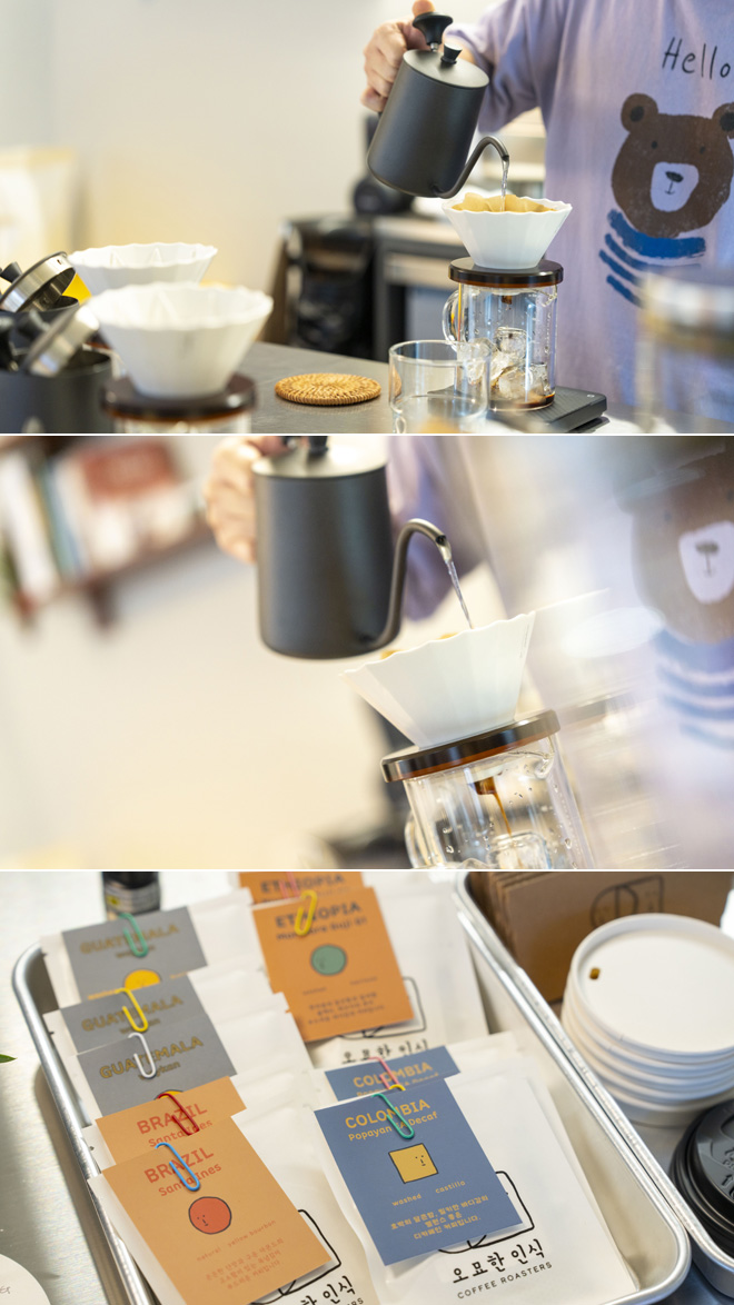 Ä«Æä ¿À¹¦ÇÑ ÀνÄÀº Ä¿ÇǻӸ¸ ¾Æ´Ï¶ó ´Ù¾çÇÑ Á¾·ùÀÇ ¸·°É¸®µµ ÇÔ²² ÆÇ¸ÅÇÏ´Â µ¶Æ¯ÇÑ °ø°£ÀÌ´Ù. ¸·°É¸®´Â ½ÒÀ» ¹ßÈ¿½ÃÄÑ ¸¸µç ºÎµå·´°í °í¼ÒÇÑ ¸ÀÀÌ ¸Å·ÂÀûÀÎ ÀüÅëÁÖÀε¥, ¸ðµç Á¦Ç°ÀÌ ‘´ëÇѹα¹ ¿ì¸® ¼ú ǰÆòȸ’¿¡¼ »óÀ» ¹ÞÀº ¸·°É¸®·Î ‘´©·è, ½Ò, ¹°’ ¼¼ °¡Áö ¿ø·á¸¸ »ç¿ëÇßÀ¸¸ç Á¦Ç°¸¶´Ù °¢±â ´Ù¸¥ ¸À°ú dz¹Ì¸¦ Áñ±æ ¼ö ÀÖ´Â °ÍÀÌ Æ¯Â¡ÀÌ´Ù. ¸ÅÀå Æ¯¼º»ó ³»ºÎ¿¡¼ Áñ±â±â´Â ¾î·Æ°ÚÁö¸¸ Ä«Æä¿¡¼ ÀÌ·¯ÇÑ ¸·°É¸®¸¦ Á¢ÇÒ ¼ö ÀÖ´Ù´Â °ÍÀÌ »ö´Ù¸¥ °æÇèÀ̾ú´Ù.