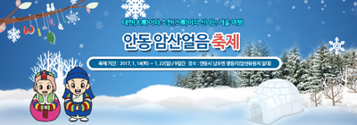 ¿µ³² Áö¿ª ÃÖ´ë °Ü¿ï ÃàÁ¦ÀÎ ¾Èµ¿¾Ï»ê¾óÀ½ÃàÁ¦°¡ ¾Èµ¿½Ã ³²ÈÄ¸é ¾Ï»êÀ¯¿øÁö ÀÏ´ë¿¡¼ 2017³â 1¿ù 14ÀÏ(Åä)ºÎÅÍ 1¿ù 22ÀÏ(ÀÏ)±îÁö 9Àϰ£ °³ÃֵȴÙ. ¡º´ëÇÑÀÌ¿Í ¼ÒÇÑÀÌÀÇ °Ü¿ï¿©Çà¡»À̶ó´Â ½½·Î°ÇÀ¸·Î °³ÃֵǴ À̹ø ÃàÁ¦´Â 1¿ù 14ÀÏ(Åä) °³¸·Çà»ç¸¦ ½ÃÀÛÀ¸·Î º¼°Å¸®, Áñ±æ°Å¸®, ¸Ô°Å¸® µî ´Ù¾çÇÑ ÇÁ·Î±×·¥µé·Î ÁøÇàµÉ ¿¹Á¤ÀÌ´Ù.